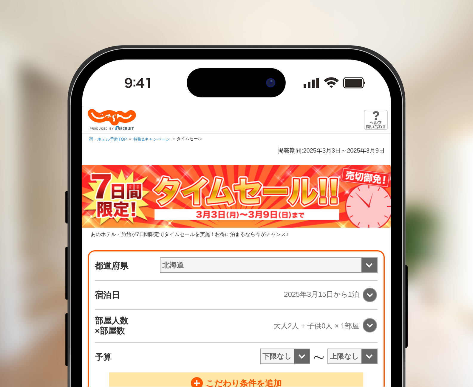 期間限定のホテルタイムセールを実施中!
