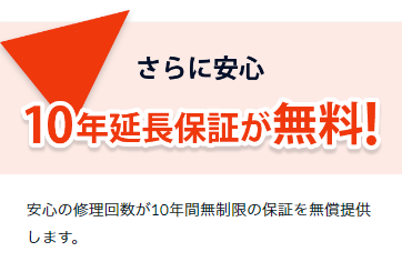 急湯デポでは、商品+工事の無料保証が10年ついています。