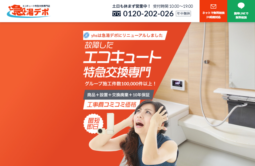 急湯デポのHPを確認すると、最短即日対応という文言も確認できました。