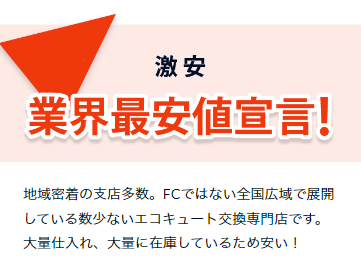 急湯デポのHPを確認すると、業界最安値宣言!という文言を確認できました。