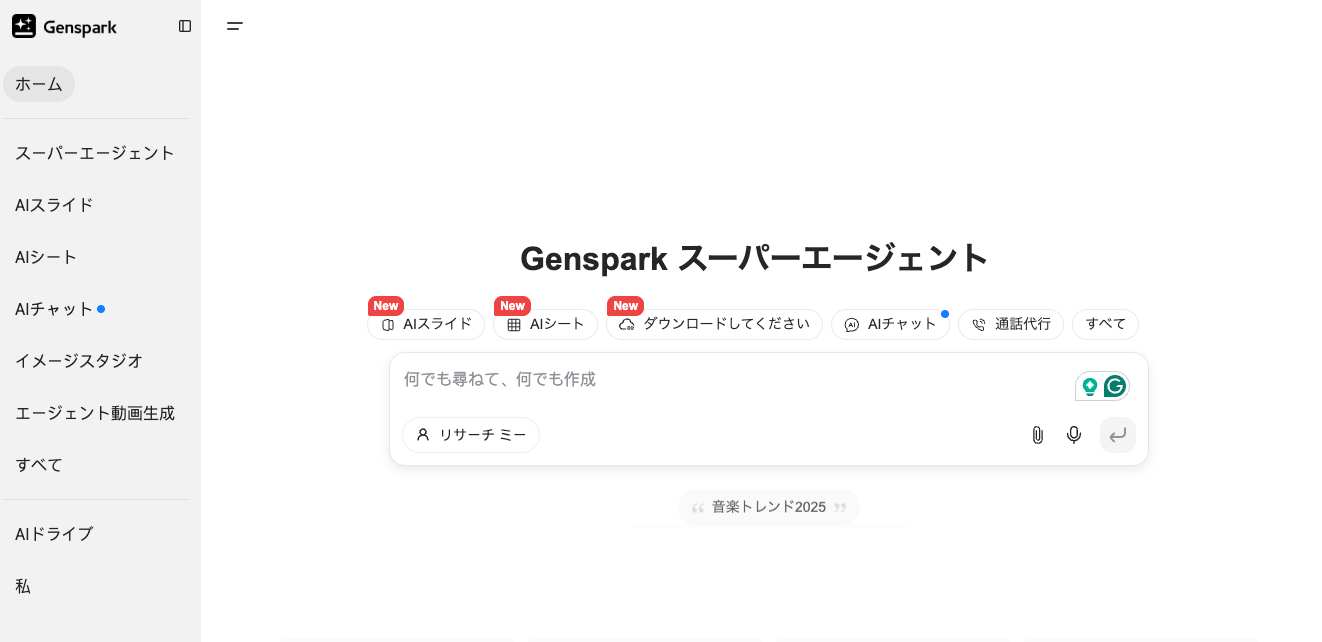 Gensparkは、単純なチャット型AIとは一線を画す、高度な機能を備えたAIエージェントプラットフォームです。その主な特徴は以下のとおりです。