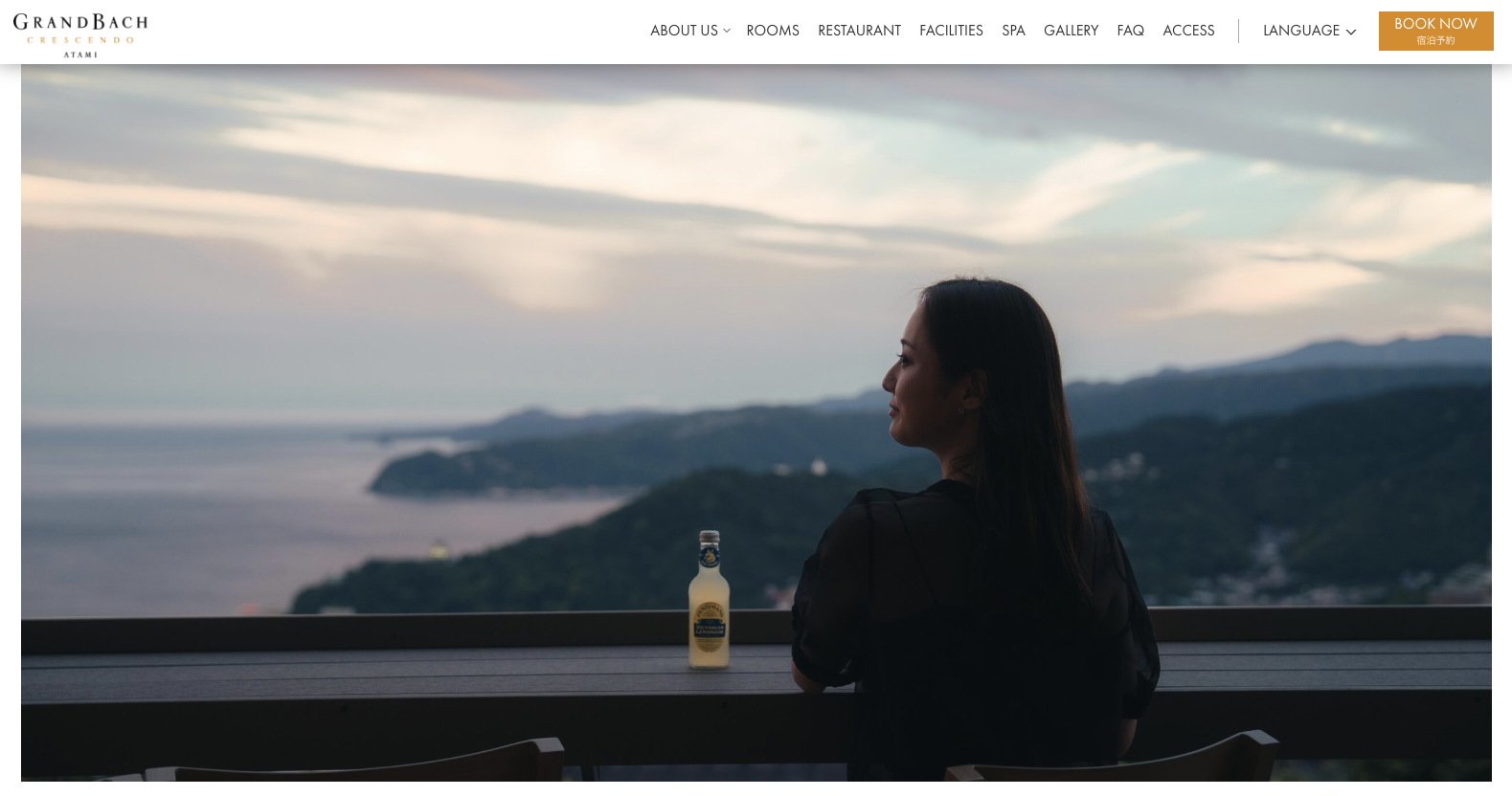 ここでの滞在は、まさに五感で音楽に浸る特別な体験です。館内にはJ.S.バッハの音楽が静かに流れ、心の奥深くまで優しく響きます。食事には、富士山麓から半径50キロ圏内の旬の食材を使った、オーベルジュならではの“熱海キュイジーヌ”が並びます。食・音・空間が調和するなかで、熱海の街並みと海を一望する温泉に身をゆだねれば、日常の喧騒がすっとほどけていく感覚に包まれるはずです。