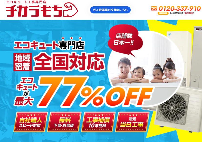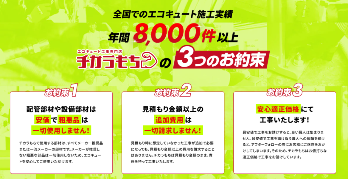 「チカラもち」は、給湯器・エコキュート交換工事専門の会社です。