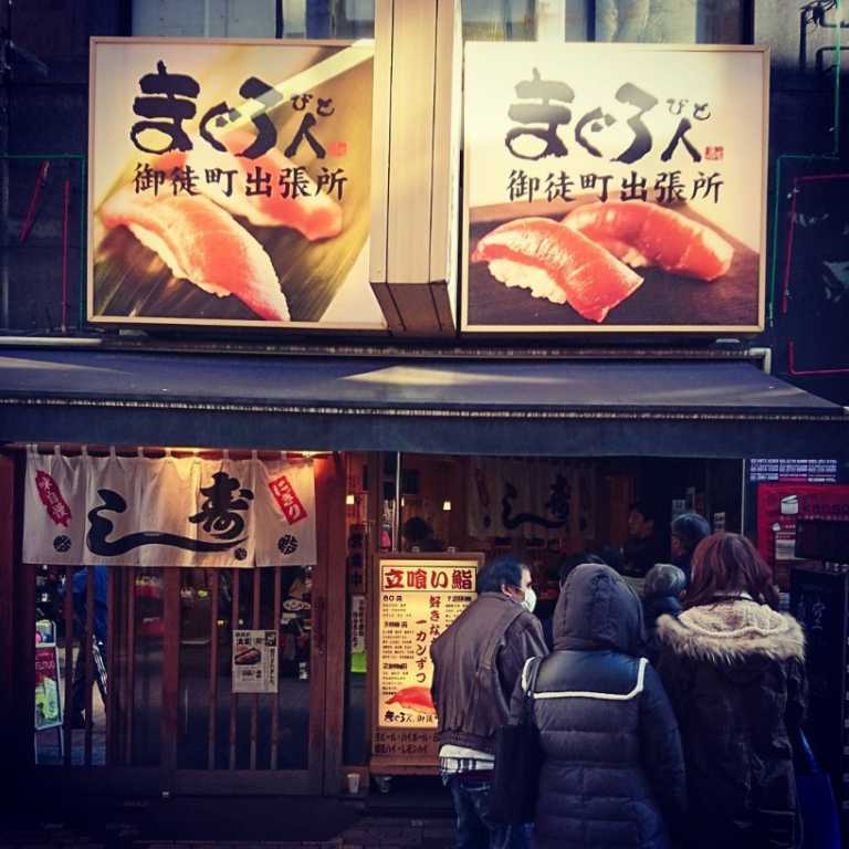 まぐろ人 御徒町出張所 立ち食い寿司の名店で、新鮮なマグロを中心とした寿司を1貫80円から楽しめます。づけまぐろ240円は、程よく醤油ダレが浸透した絶品の一貫。ひとりでも気軽に利用でき、コストパフォーマンスも抜群です。
